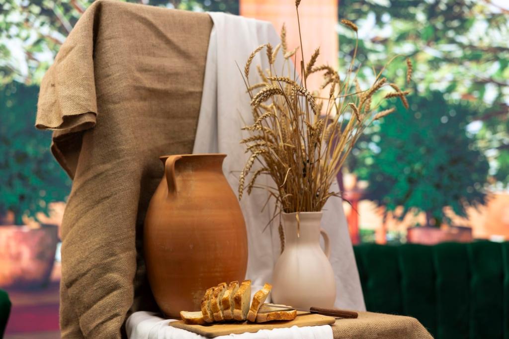 Ein luftiger Leinenvorhang filtert Tageslicht weich, während ein Juteteppich optisch erdet und Trittsicherheit schenkt. Kombiniert mit einer gestrickten Wolldecke entsteht ein lebendiges Spannungsfeld aus Leichtigkeit, Griff und Behaglichkeit für Alltag und Gäste.